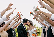 B + J tied the knot at a modern barn in Warrenton, Virginia, on a picture-perfect early August day. Their playful, laid-back vibe set the tone for a joyful, emotion-filled celebration, with bridesmaids in champagne dresses and bright orange and yellow florals adding a warm, cheerful pop. They exchanged vows under a giant tree, shared a heartfelt family prayer during the ceremony, and celebrated with a huge bridal party made up mostly of family—so the day was full of genuine laughter, fun, and love. Sunset portraits were stunning, and the evening ended with dancing on the patio and a whimsical bubble send-off, a perfect finale to a day full of unforgettable moments.