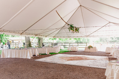 The property itself was stunning. Jarett’s dad is a skilled landscaper, and it showed — every corner of the yard felt lush, intentional, and well cared for. Their ceremony took place outdoors beneath a beautiful arch adorned with faux florals created by a relative, followed by a tented reception nearby.